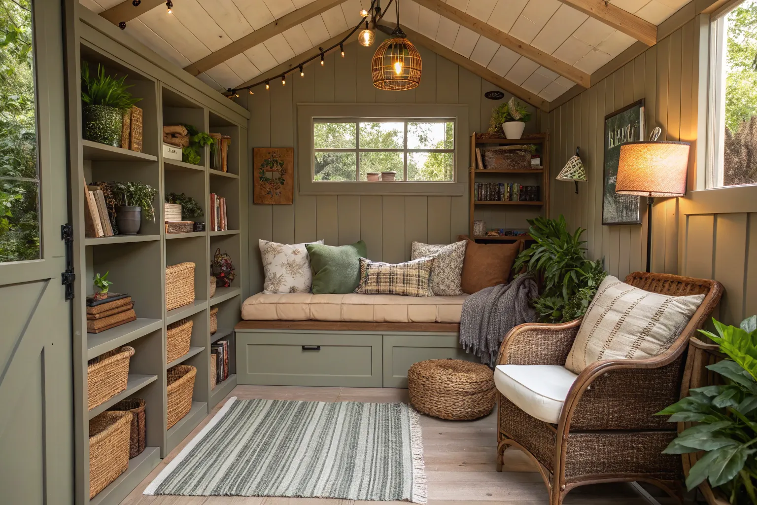 Create a serene escape by setting up a reading nook in a corner of your shed. A comfy chair, a small bookshelf, and a soft throw can transform any space into a literary haven.