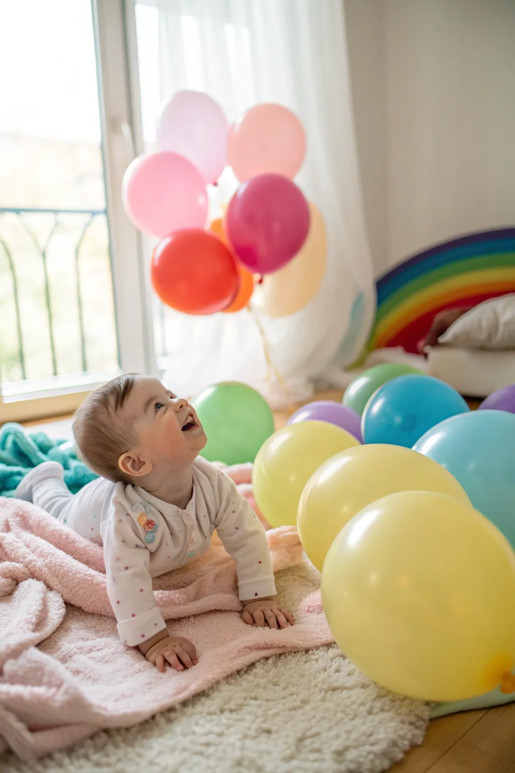 Fill the room with colorful balloons to create a joyful and lively atmosphere. This vibrant setup is sure to bring out giggles and smiles.