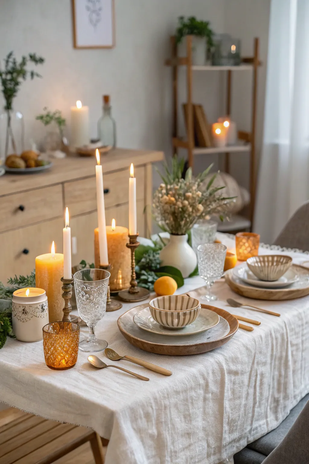 Recreate the magic of a fancy restaurant by setting up a candlelit dinner in your dining room. I love using my collection of vintage candles to add a touch of nostalgia and warmth.