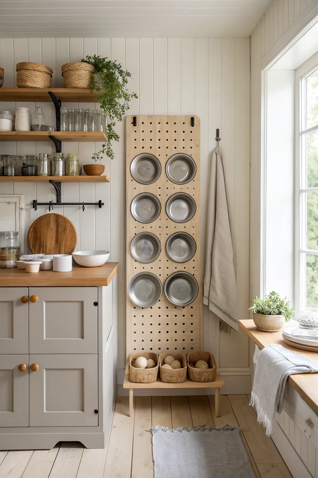 - Wooden pegboard panel: Upgrade your pantry with a reliable wooden pegboard for versatile baking pan storage.