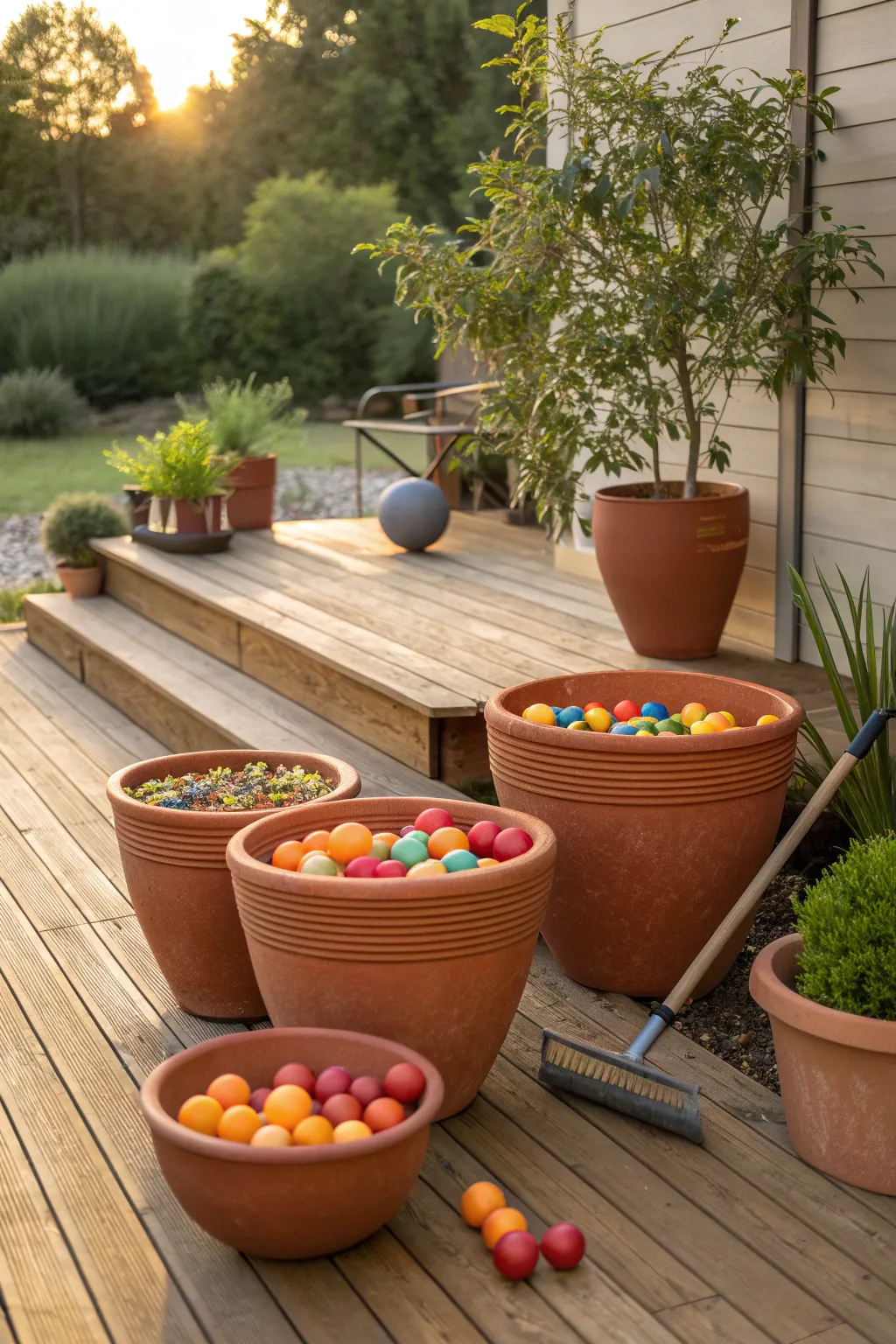 - Decorative Terracotta Planters: Add charm with terracotta planters ideal for storing balls while enriching outdoor aesthetics.