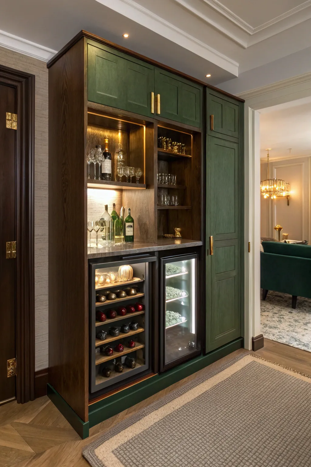 Balancing open and closed storage allows you to display your finest bottles while keeping clutter hidden. This mix is my go-to strategy for maintaining both aesthetics and functionality.