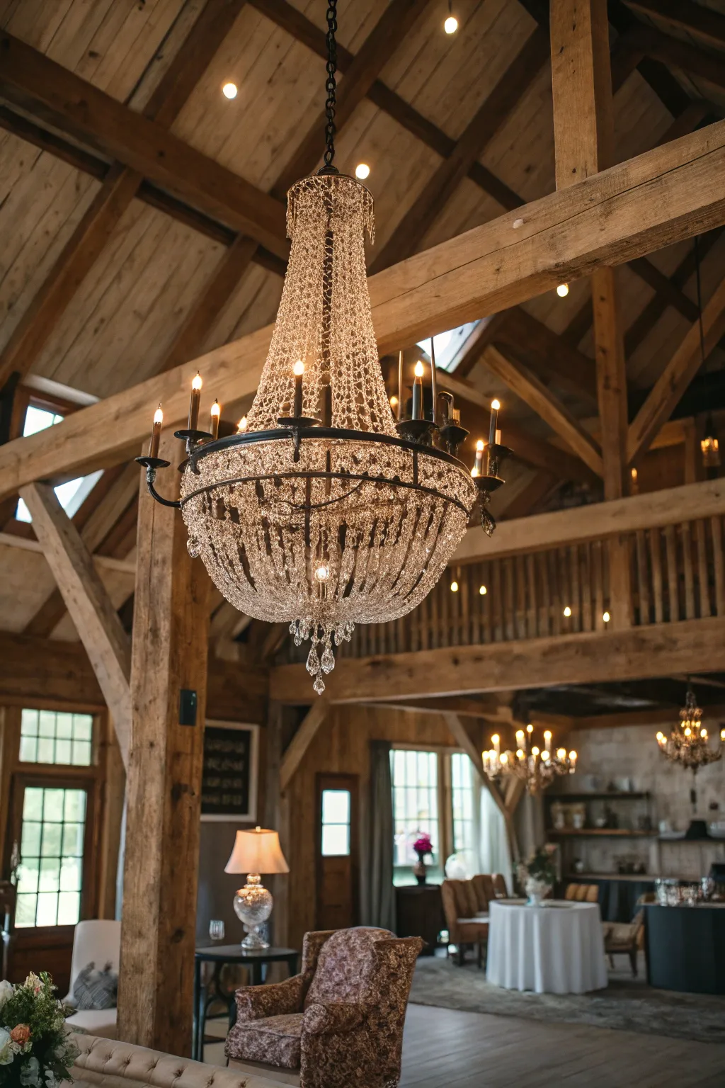 - Rustic Crystal Chandelier: Transform your barn with this stunning crystal chandelier for an elegant and refined ambiance.