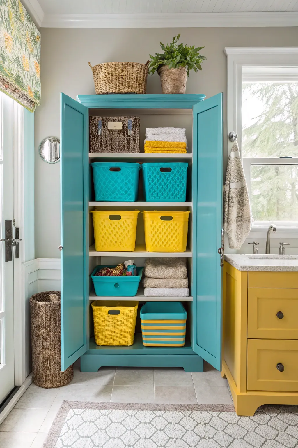 • Set of Woven Storage Baskets: Enhance your bathroom with these charming baskets, perfect for organizing towels and toiletries.