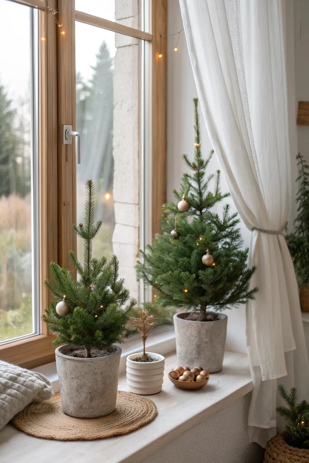 Add small potted evergreens or plants to your window sill for a touch of nature. Decorate them with mini ornaments or lights for a festive look. 🌿 #NatureInspired #HolidayDecor