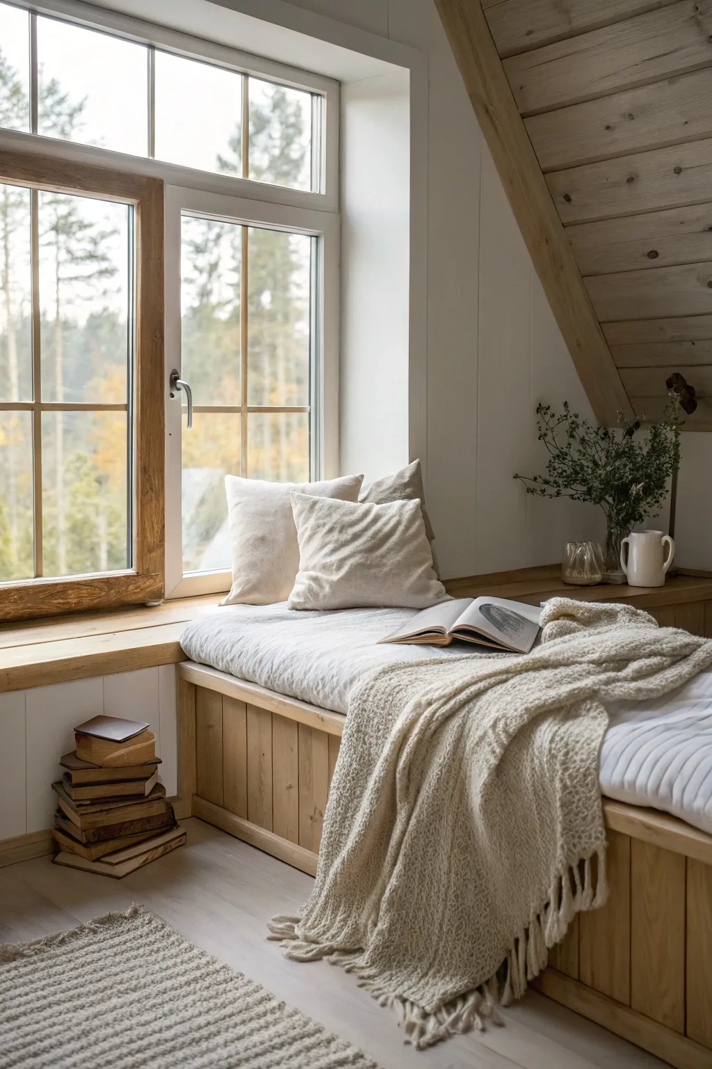 Combine different textures like velvet, linen, and wood to add depth to your window-bed area. I love how this mix can create a cozy yet dynamic atmosphere.