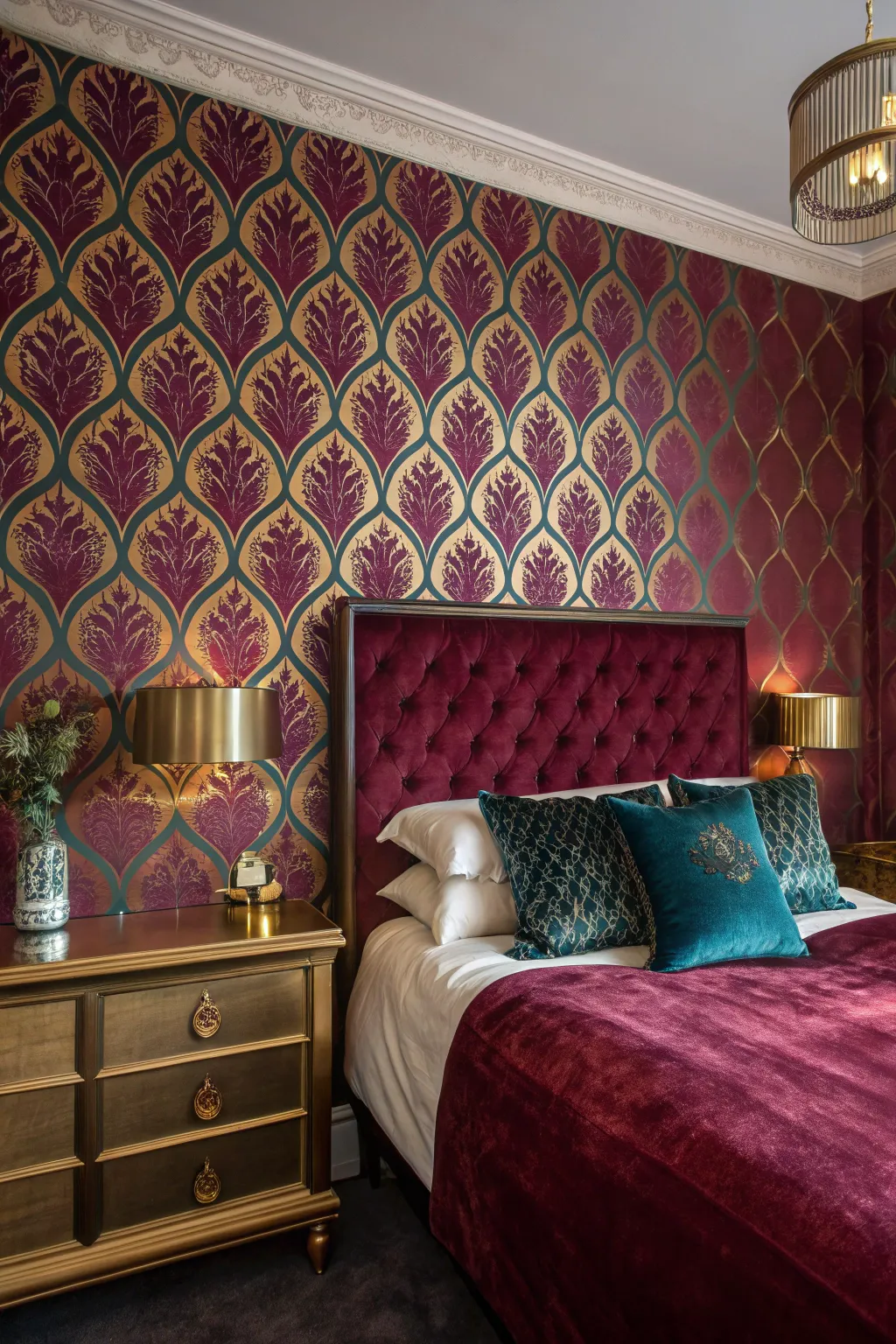 A bold wallpaper can add instant personality and flair to your headboard wall. It’s like dressing your bedroom with a unique outfit.
