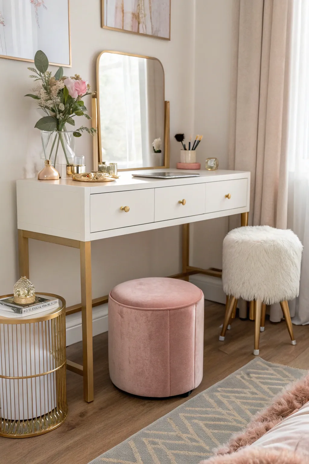 • Velvet Vanity Stool: Add a touch of elegance with a plush velvet stool for your vanity area.