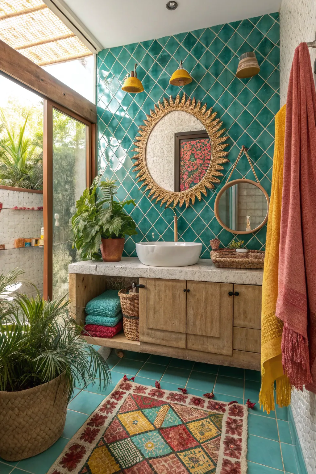 Incorporate colorful rugs and patterned towels for an instant boho flair. I’ve found that mixing ethnic prints adds a rich tapestry of culture and warmth to any space.