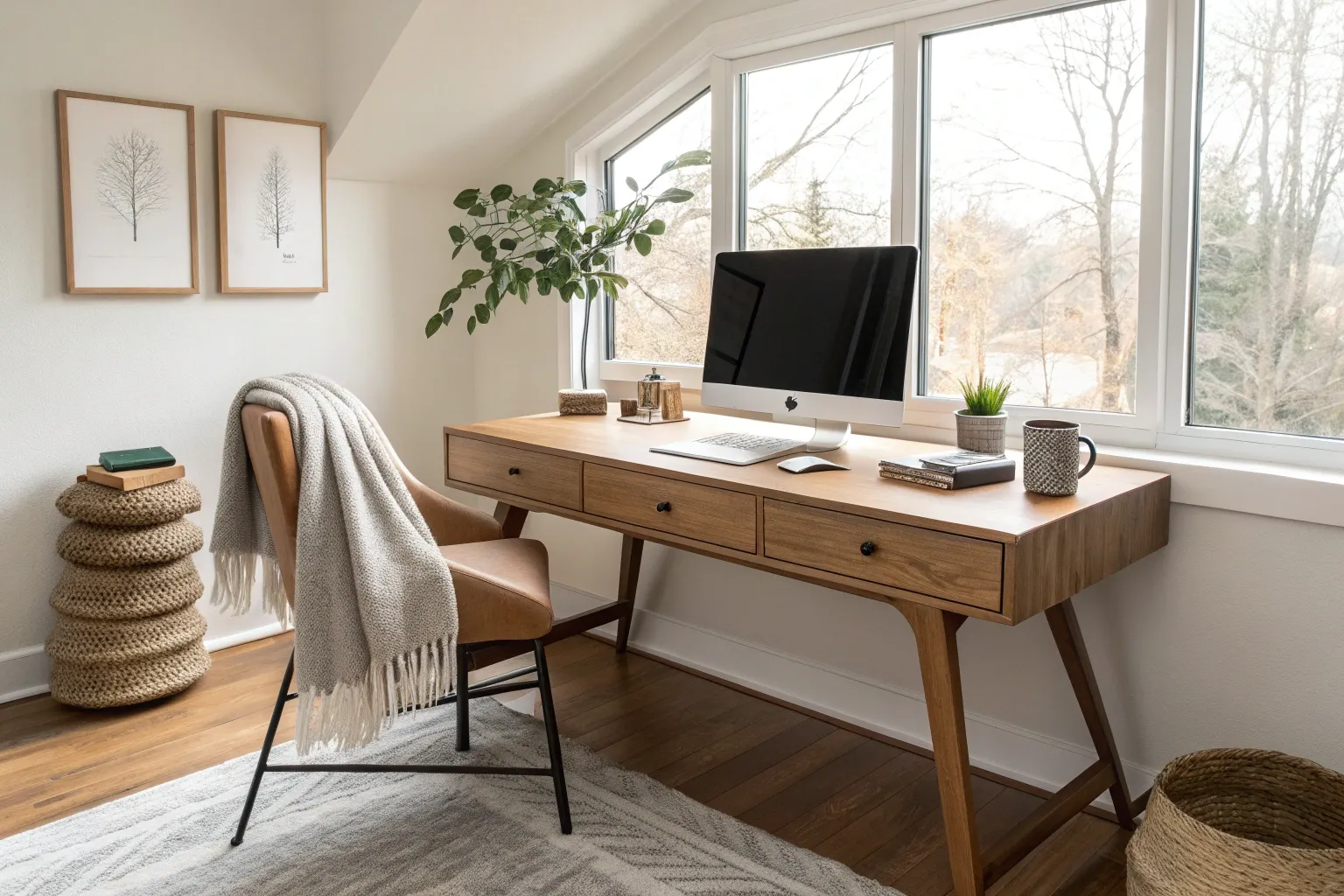 Embrace Scandinavian minimalism by choosing neutral colors and uncluttered surfaces. This style creates a calm and focused atmosphere, perfect for productivity.