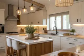 - Eclectic Farmhouse Pendant Lights: Transform your kitchen with farmhouse-style pendant lights for a welcoming, eclectic vibe.