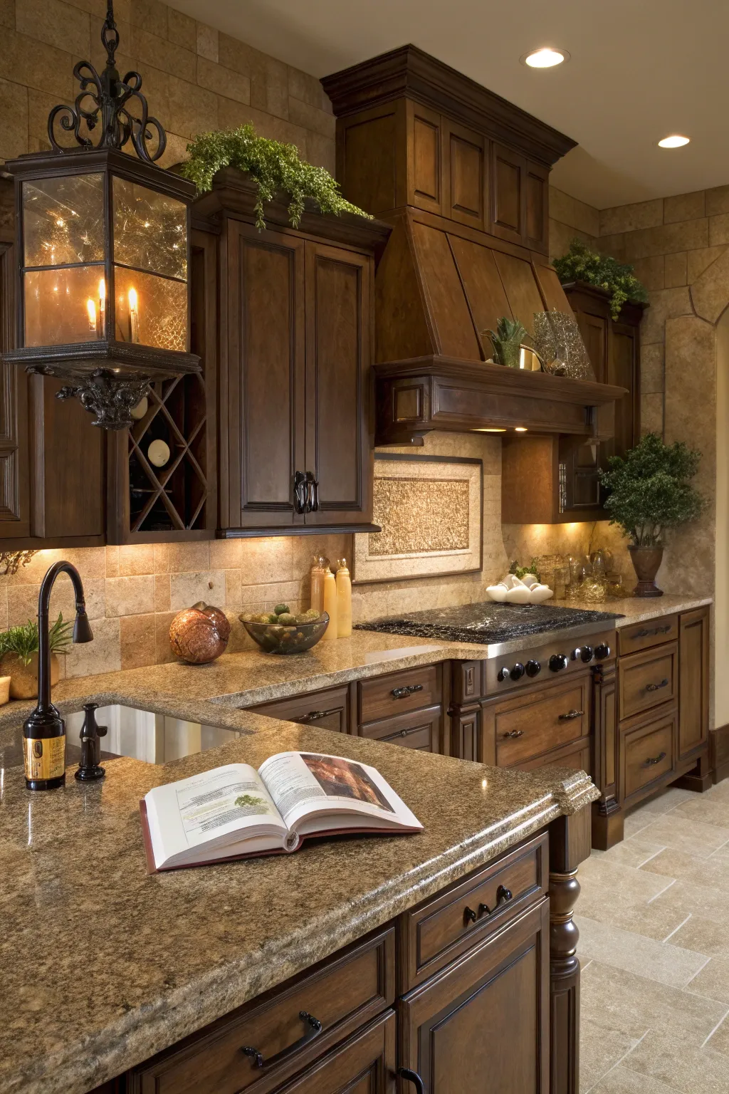 Combine brown granite with rustic farmhouse elements for a cozy, inviting kitchen. Wooden beams and vintage accessories can create a charming, timeless feel that I find irresistibly heartwarming.