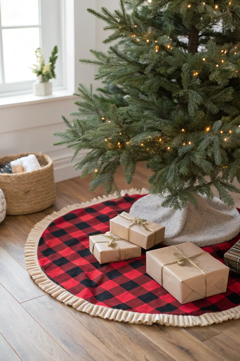 Anchor your tree with a buffalo plaid tree skirt. It ties the whole look together and provides a lovely base for your presents.