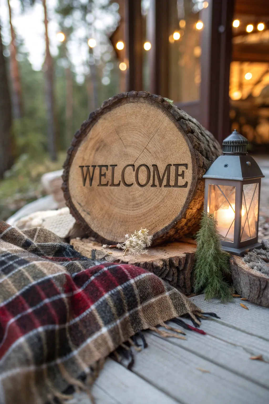 Get crafty with DIY log slice signs that showcase your personal touch. I made one for our cabin with a simple ‘Welcome’ etched into its surface.