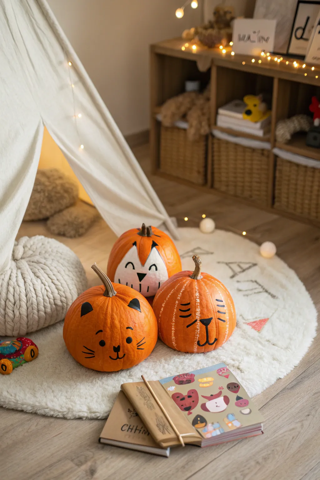 - Acrylic Paint Set: Use vibrant acrylic paints to bring cute animal faces to life on your pumpkins.