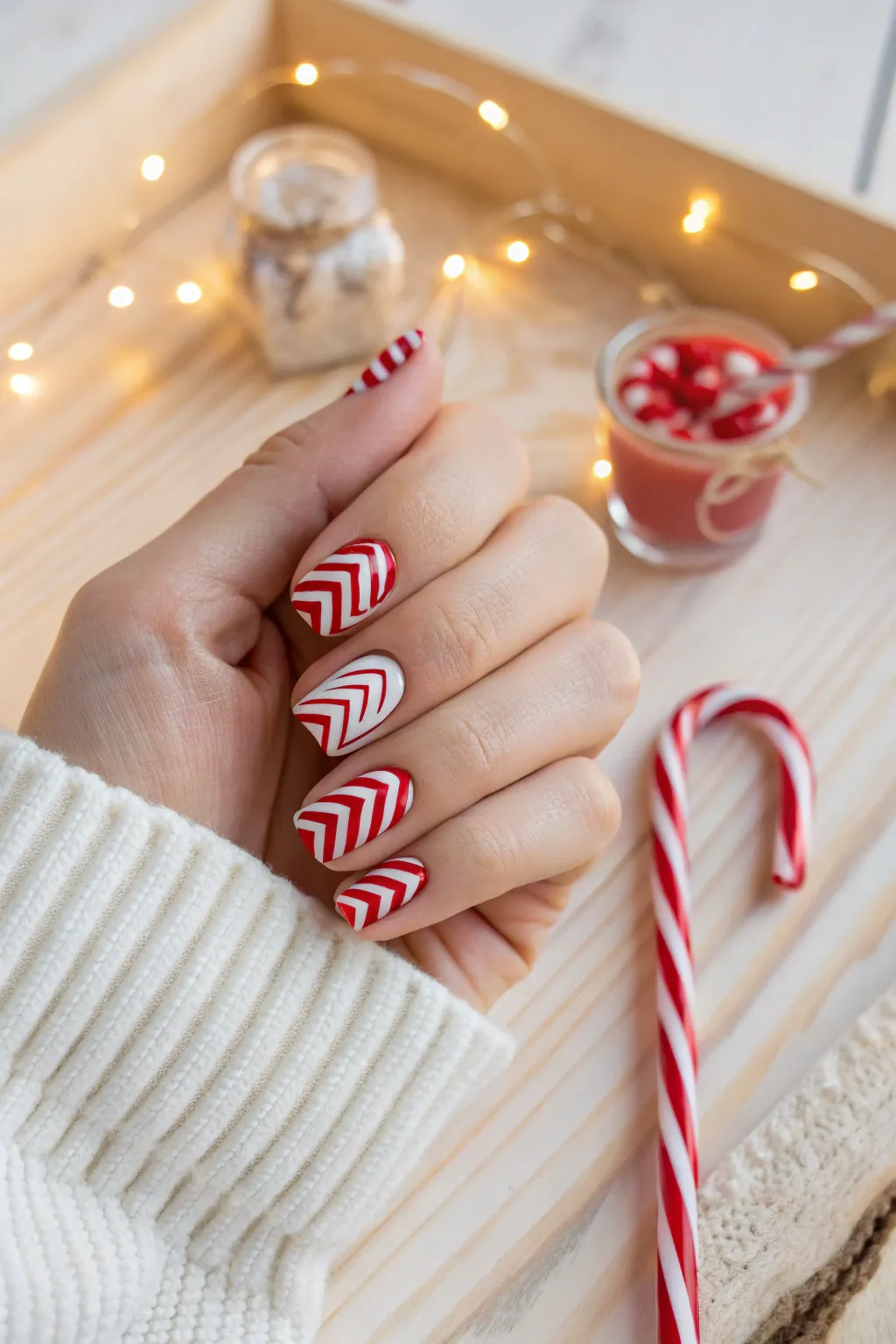 You can’t go wrong with the timeless combination of red and white stripes. It’s like wearing a piece of nostalgia on your nails, reminding me of cozy evenings in my Boston apartment during the holidays.