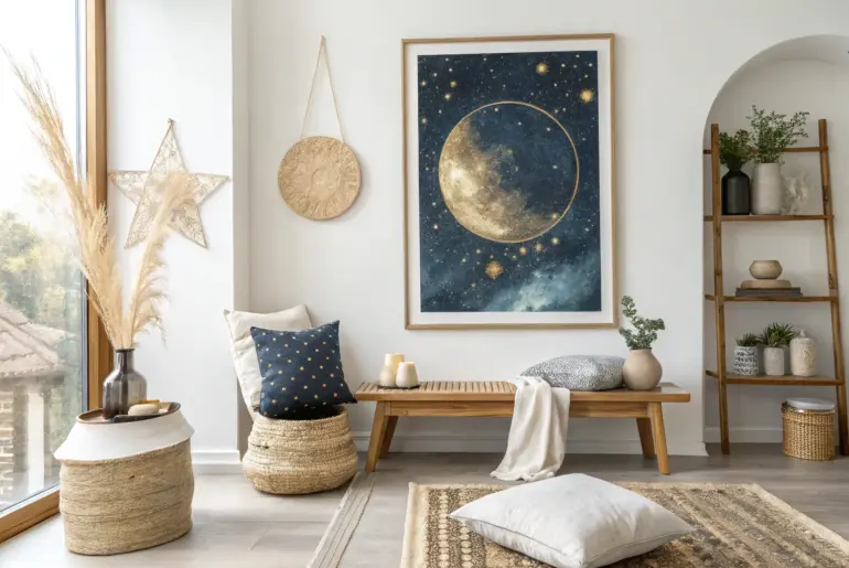 Have you ever looked up at the night sky and wondered about the beauty beyond our world? Bringing that celestial magic into your home is easier than you think with space-themed artwork. Celestial Tapestry Wrap your room in the cozy charm of a celestial tapestry. Drape a celestial tapestry for a cozy and celestial atmosphere. I love how they can instantly transform a space into a cosmic haven. May just do the trick: Galaxy-Themed Wall…