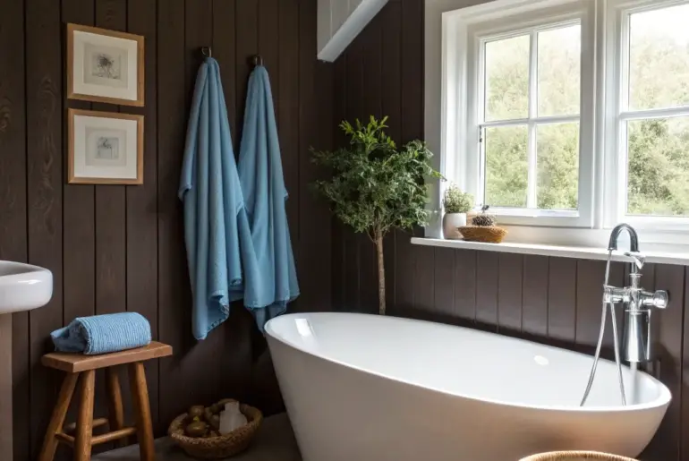 Bathrooms can be more than just a functional space; they’re a personal retreat. Embracing dark brown tones can transform your bathroom into a warm, inviting oasis. Warm Lighting Magic Warm lighting transforms this bathroom into a cozy sanctuary. 🌟 #AmbientLighting #HomeDecor Incorporate warm lighting to enhance the richness of dark brown tones. Proper lighting can transform the atmosphere, making it both cozy and inviting. Try these: Wall Sconce Lighting Fixtures: Enhance your bathroom’s ambiance with…