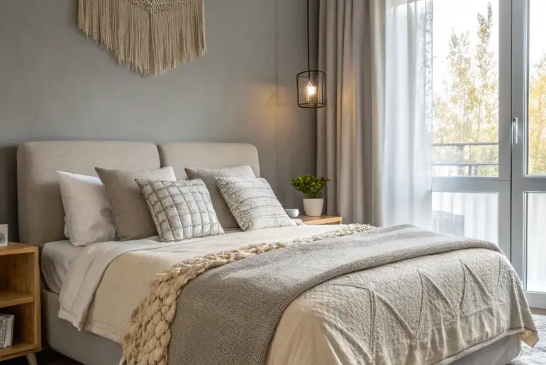 Creating a peaceful oasis in your bedroom doesn’t require a total overhaul. By blending gray and beige tones, you can achieve a soothing space that invites relaxation and comfort. Artistic Gallery Escape Unleash your artistic side with this gallery-inspired bedroom. 🎨 #ArtisticHome #InteriorDesign Transform your room with a gray accent wall adorned with abstract art in beige and gray. A tufted beige headboard adds sophistication to the space. Give these a look: Tufted Beige Headboard:…