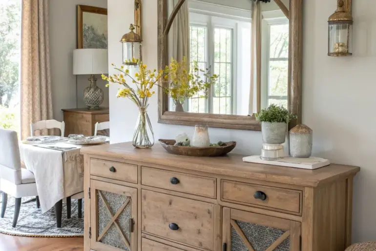 Transforming your buffet into a farmhouse masterpiece is all about blending rustic charm with functional elegance. Here are some of my favorite ideas to help you create that warm, inviting farmhouse vibe. Balance with Symmetry Symmetry brings balance and harmony to your farmhouse decor. Create a balanced look through symmetry by placing matching items on either side of your buffet. It brings a sense of order and harmony to the space. You might give these…