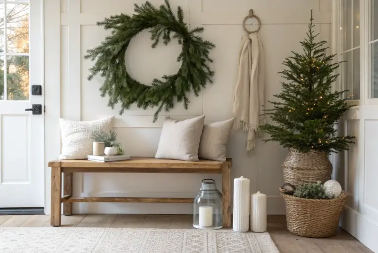 There’s something truly magical about stepping into a home and being immediately enveloped in the warmth of the holiday season. Let’s create an entryway this Christmas that feels like a gentle hug, setting the tone for the rest of your cozy abode. Cozy Seating A cozy bench with festive cushions makes your entryway inviting and practical. If space allows, include a small bench or chair adorned with festive cushions. It’s perfect for putting on shoes…