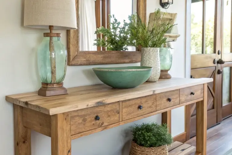Creating a welcoming entryway is all about setting the right tone from the moment someone steps through your door. With a rustic entry table, you can blend charm and functionality effortlessly. Reflect with Rustic Mirrors A rustic mirror reflects light, creating an open and bright entryway. 🌟 #RusticMirrors #HomeDecor Hang a rustic mirror above your table to open up the space and reflect light. It’s a trick I use to make my entryway feel larger…