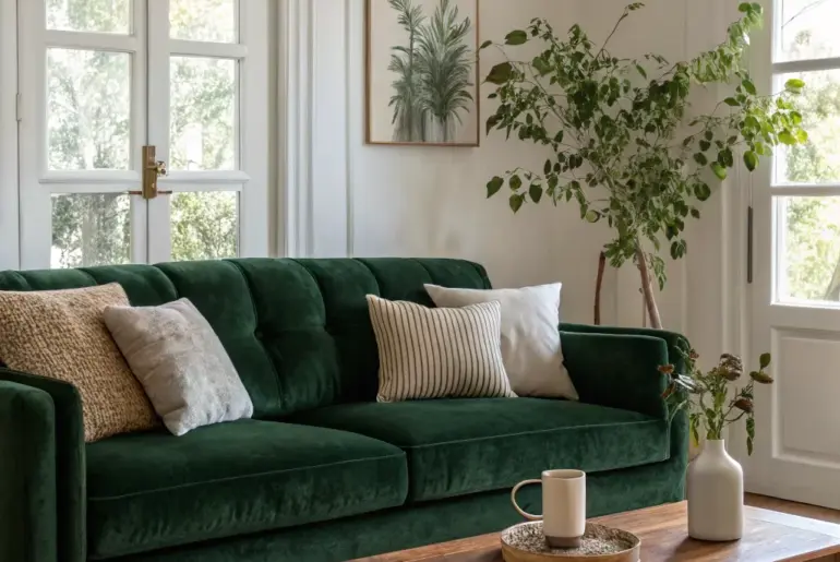 A dark green couch is a bold choice that can transform any living room into a sophisticated and inviting space. Let’s explore some inspiring ideas to style this statement piece with flair. Neutral Backdrop Let your dark green couch shine against a neutral backdrop that highlights its beauty. A neutral backdrop can make a dark green couch stand out beautifully. Light walls and flooring help the couch become the room’s focal point. A few relevant…