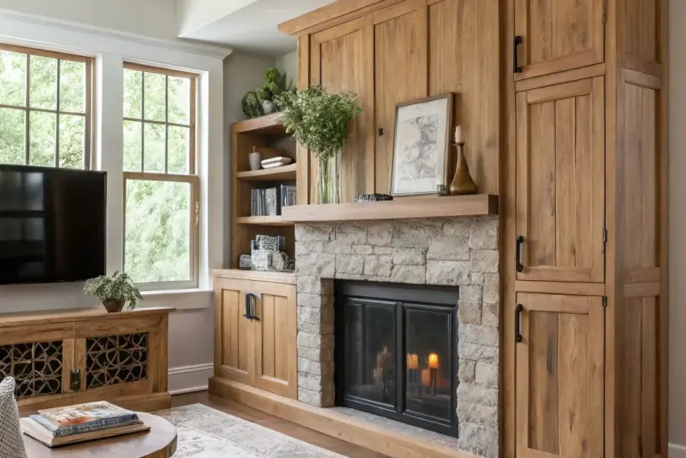 Wood mantels are the perfect blend of functionality and style, bringing warmth and character to any room. Whether you’re into rustic charm or modern elegance, there’s a wood mantel idea here that will inspire your next home makeover. Modern Minimalist Statement Less is more with a minimalist wood mantel that highlights elegant simplicity. For a sleek and contemporary look, a simple, clean-lined wood mantel can make a bold statement. In my studio, a minimalist mantel…