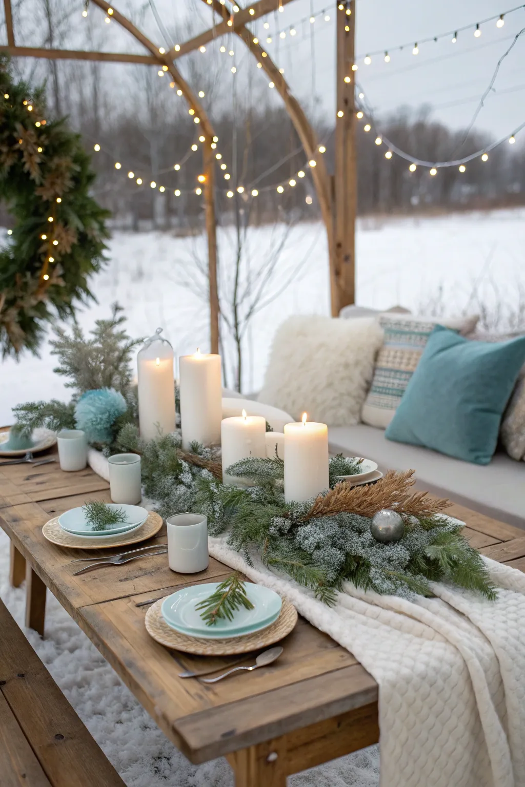 Transform your space into a snowy paradise with white decor and twinkle lights. I’ve always loved how this creates a dreamy winter atmosphere indoors.
