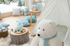 Set up a hot cocoa station with mugs, marshmallows, and chocolate shavings, all arranged on a platter. It’s a cozy addition that guests of all ages will adore.