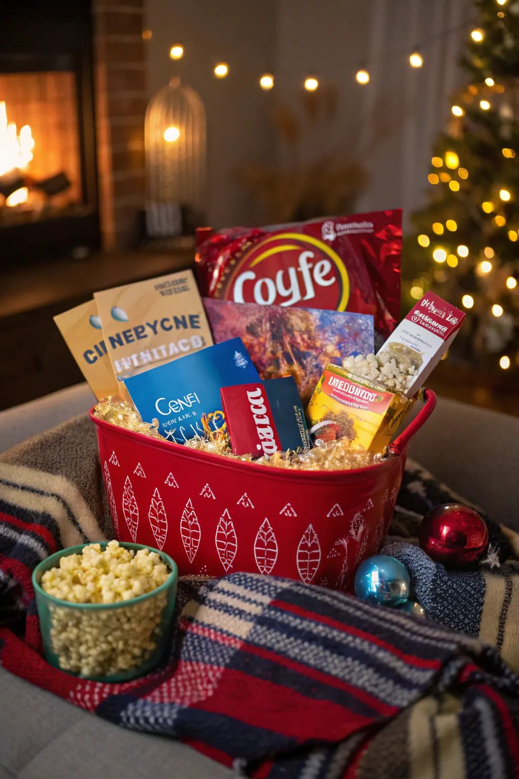 Fill this basket with popcorn, candy, and a couple of classic DVDs. A streaming service gift card is a modern twist I often add for a perfect movie night.