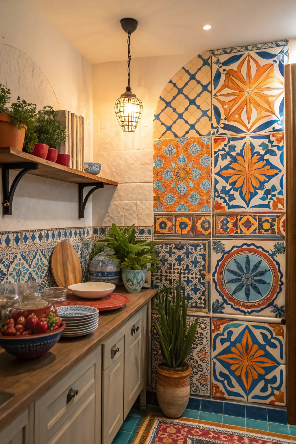 Incorporate striking tiles in your kitchen or bathroom to add a splash of color. I’ve used Moroccan tiles to create a dynamic and inviting atmosphere.