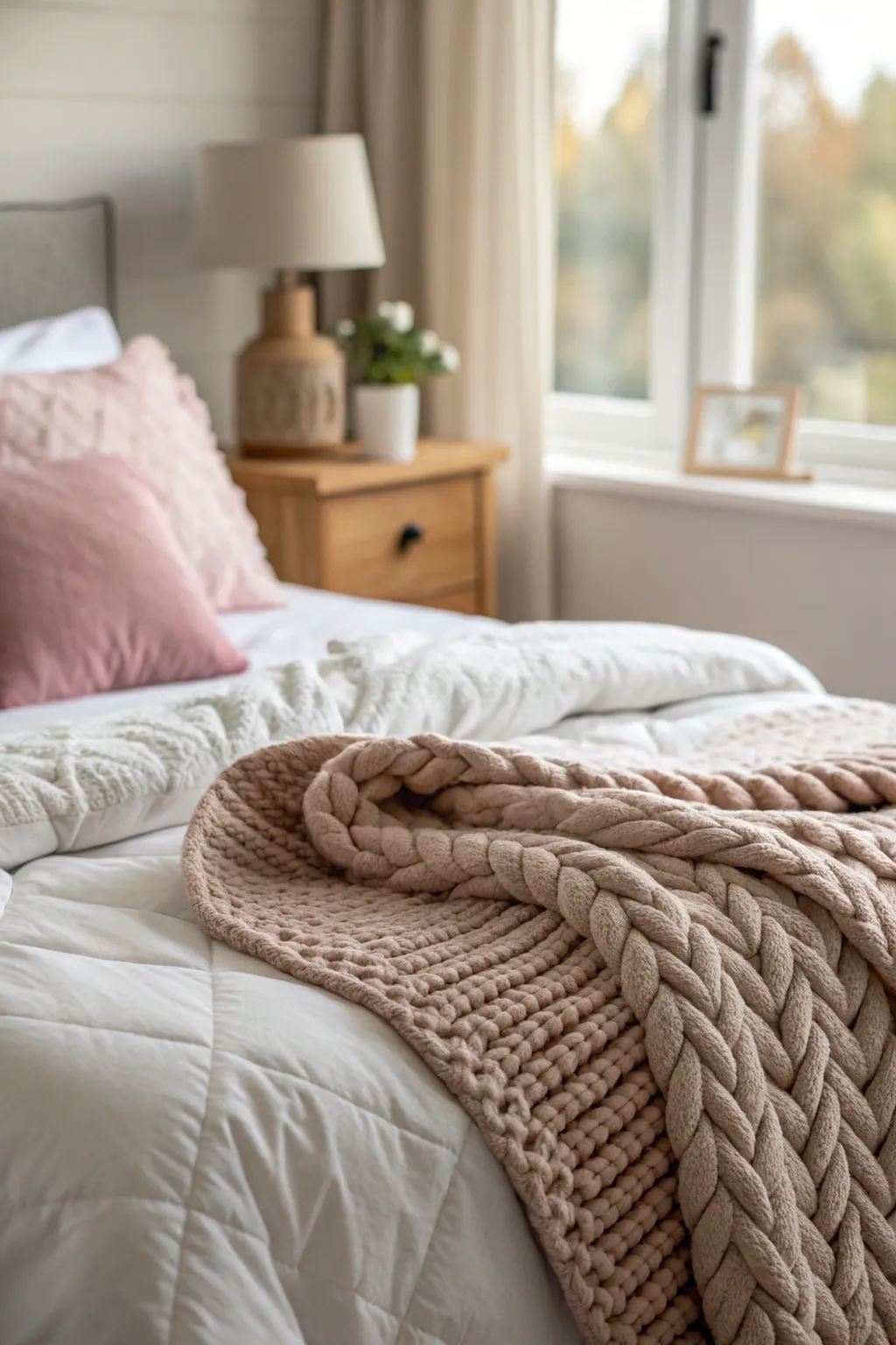 - Chunky Knit Throw Blanket: Add warmth and comfort with a chunky knit throw, perfect for cozy layering.