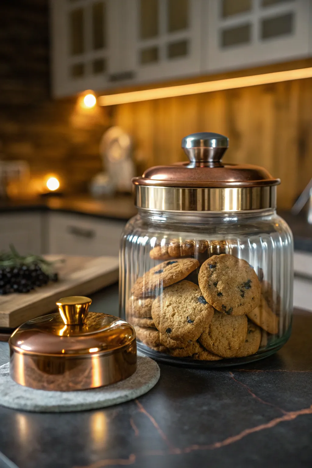 Elevate your cookie jars with metallic lids for a touch of glamour. These sophisticated touches can transform a simple jar into a statement piece.