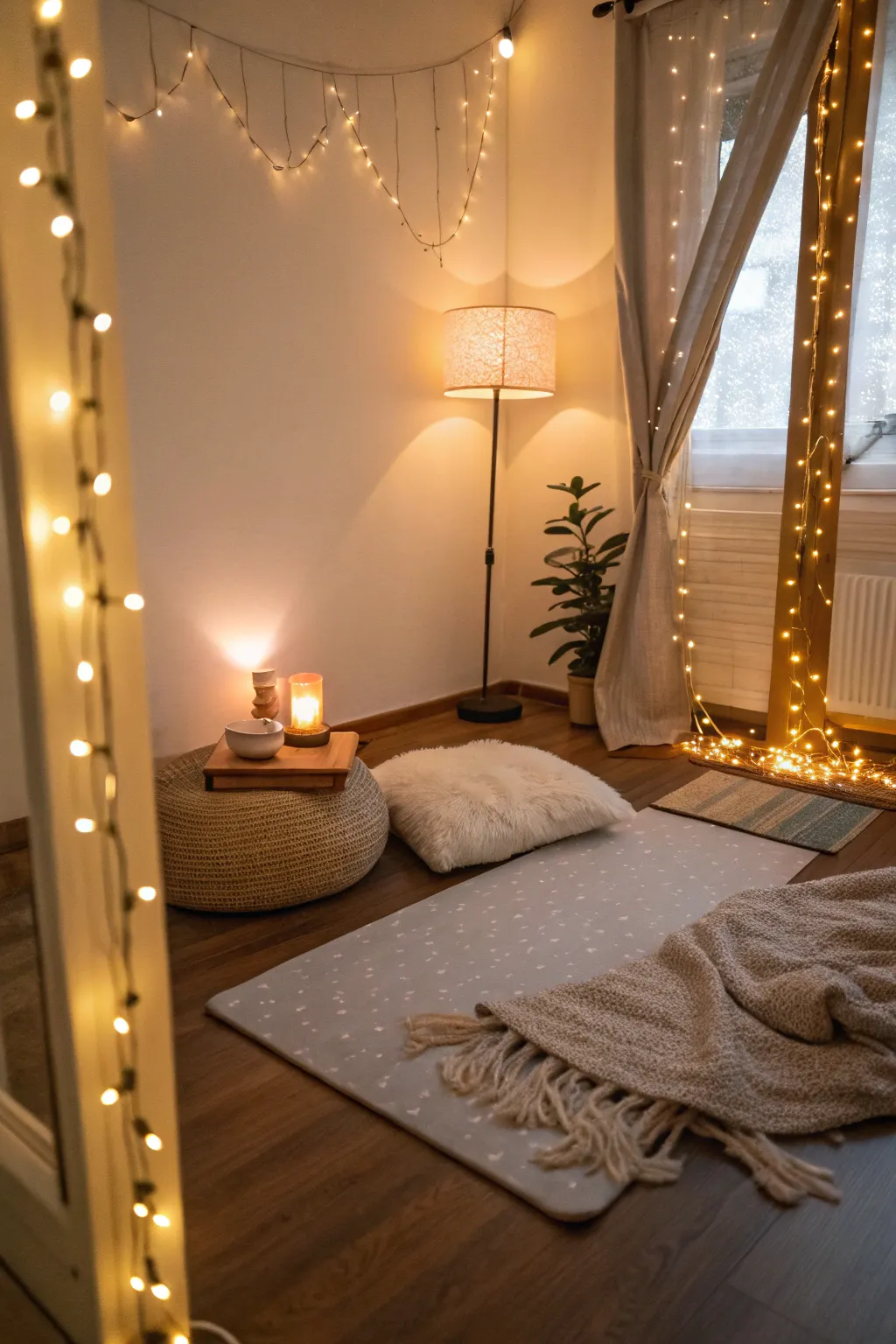 Soft lighting can transform your yoga space into a tranquil haven. I love using string lights or a gentle lamp to create a warm, inviting glow.