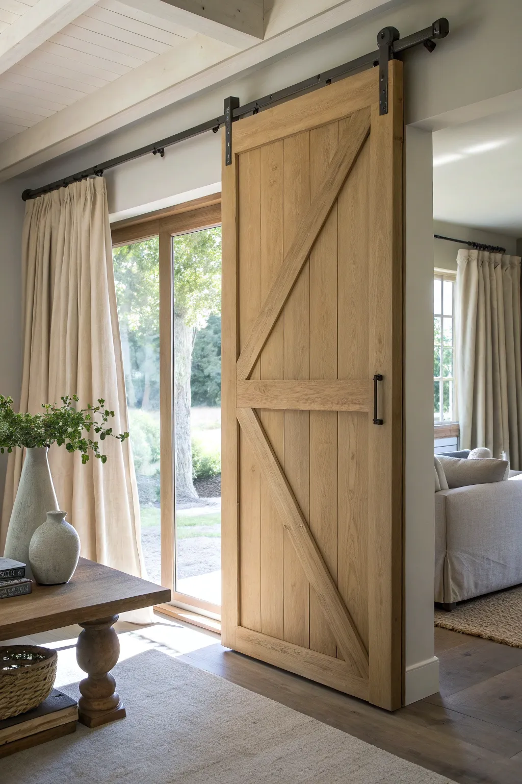 - Wooden Barn Door: Enhance ambiance with a classic wooden barn door for a cozy and warm atmosphere.