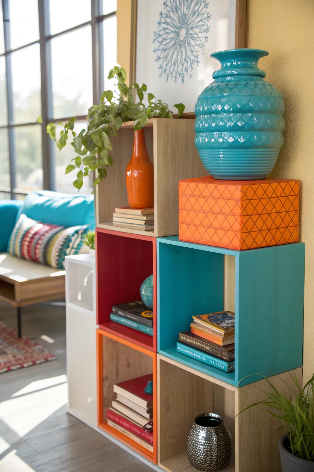 • Decorative Ceramic Vases Set: Enhance your shelf with vibrant ceramic vases of varying sizes for a bold visual statement.