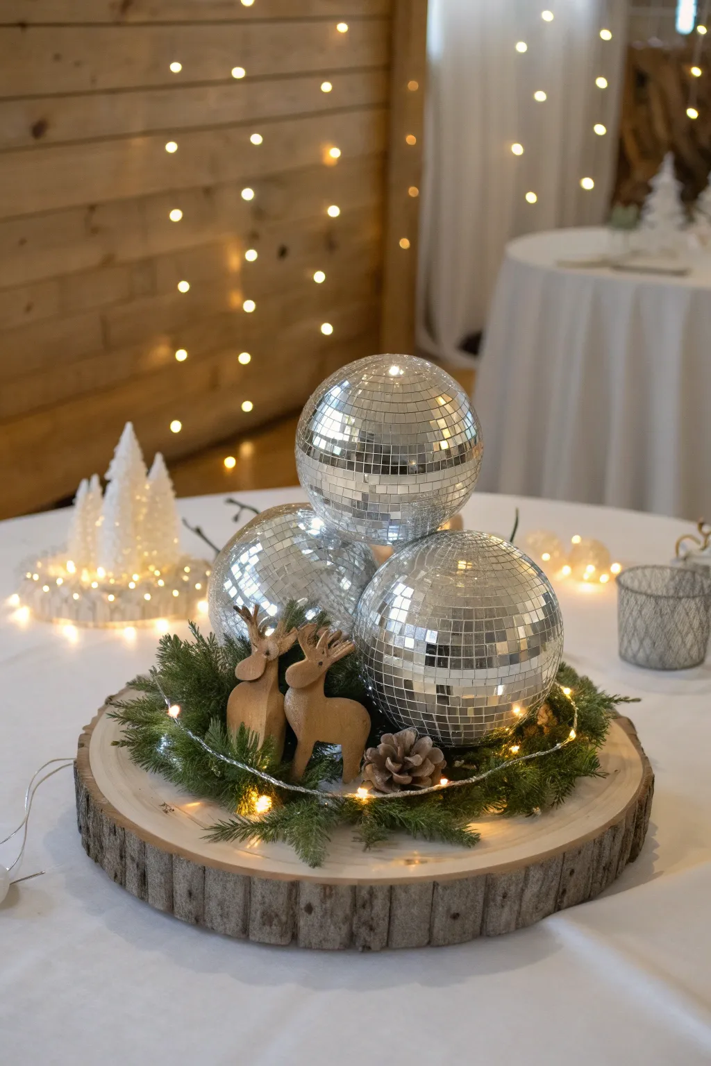 Integrate disco balls with rustic elements like burlap and wooden accents. This unexpected combo adds charm and character to any table.