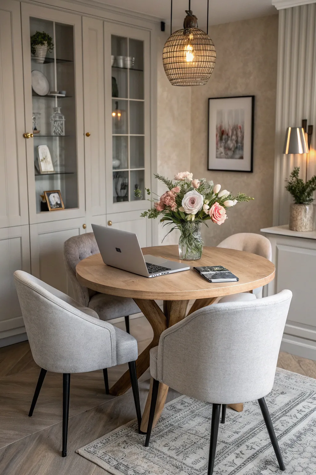Opt for a dining table that can easily transition into a work desk. I’ve found that tables with extendable leaves or drop-down features offer the flexibility needed for both meals and meetings.
