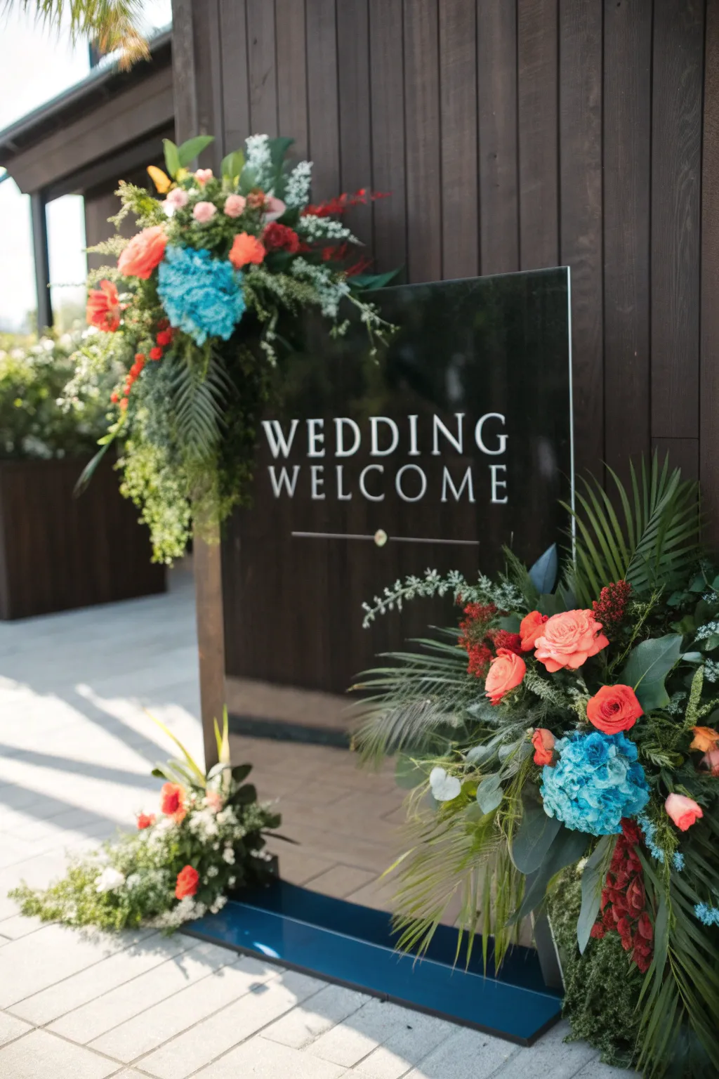 - Artificial Floral Garland: Adorn your sign with lush artificial flowers, creating a vibrant and welcoming wedding entrance.