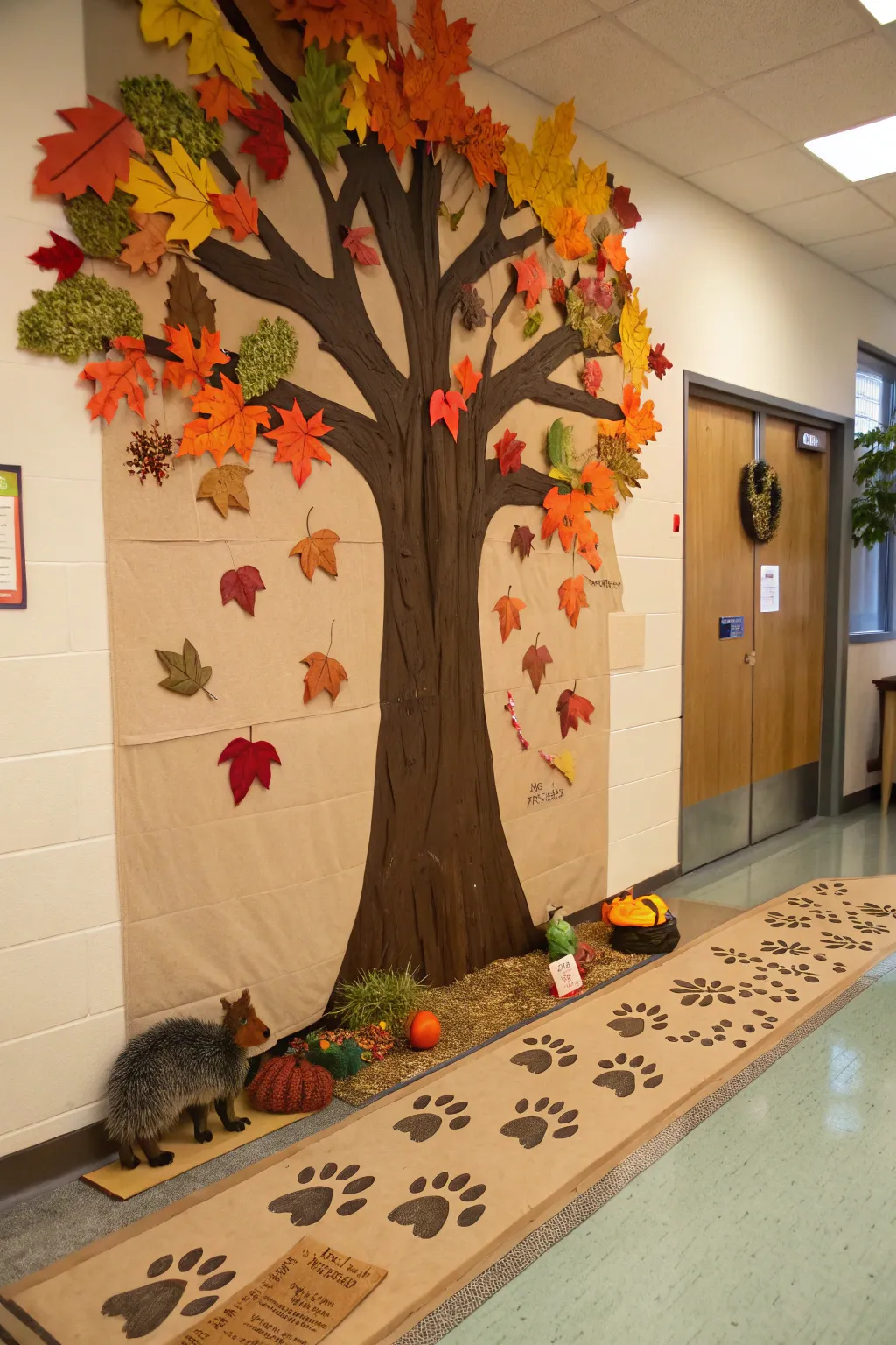 Create an Animal Tracks Adventure with cutouts of animal footprints leading to a tree or food source. It’s a fun and educational element for kids!