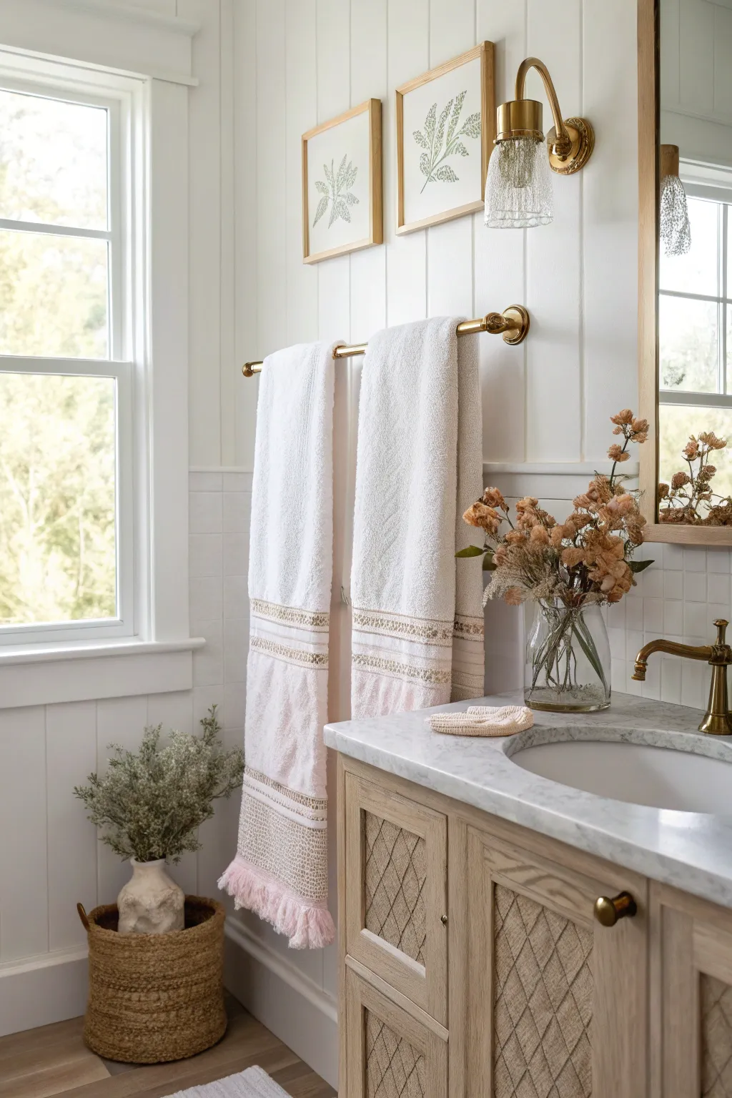 Install statement towel bars in unique shapes or finishes. They can serve both as practical tools and decorative elements.