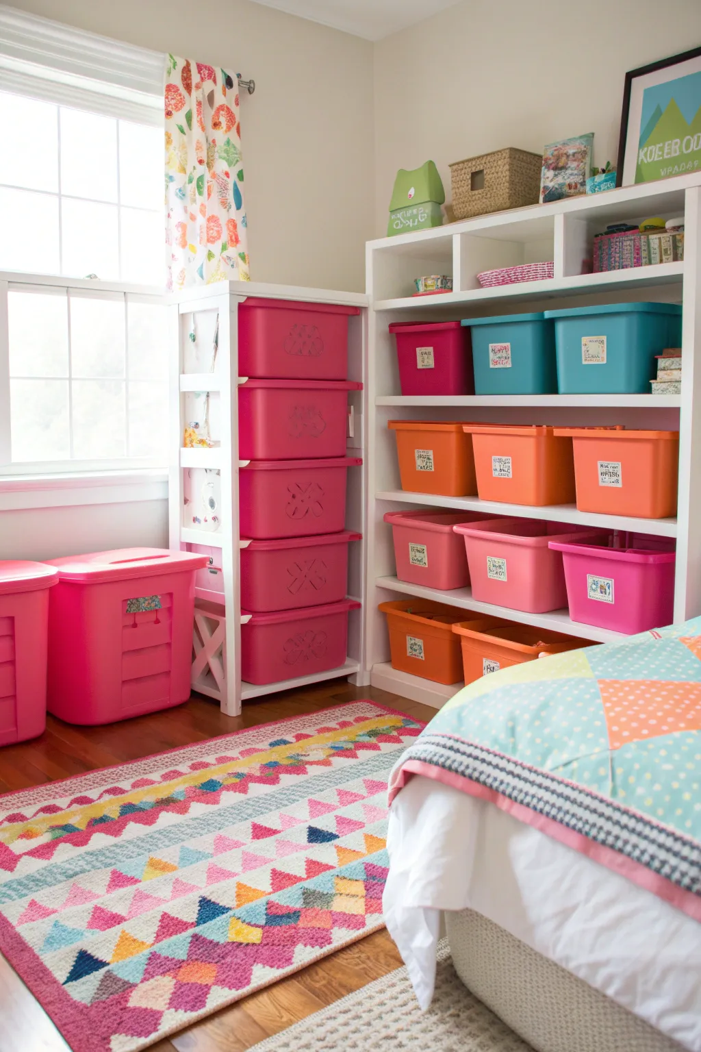 Stylish storage bins in coordinating colors or themes can create a neat and cohesive look. We chose bins that matched my daughter’s favorite colors, and now cleaning up is a breeze.