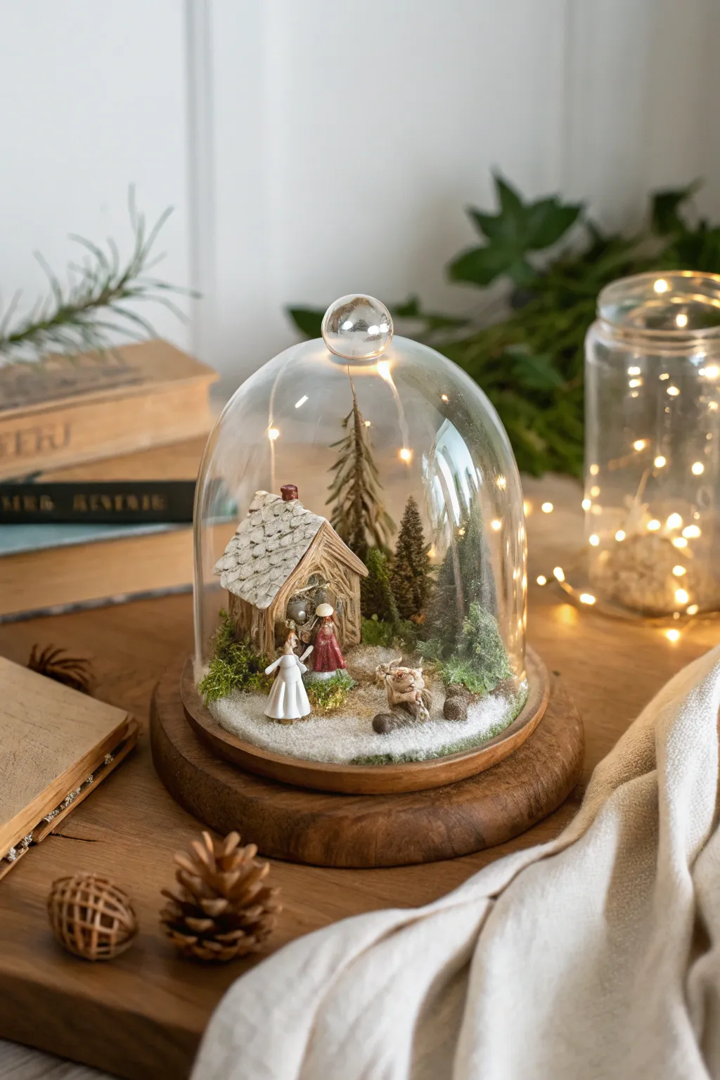 - Decorative Miniature Christmas Tree: Place a small Christmas tree under the dome to add a festive touch instantly.