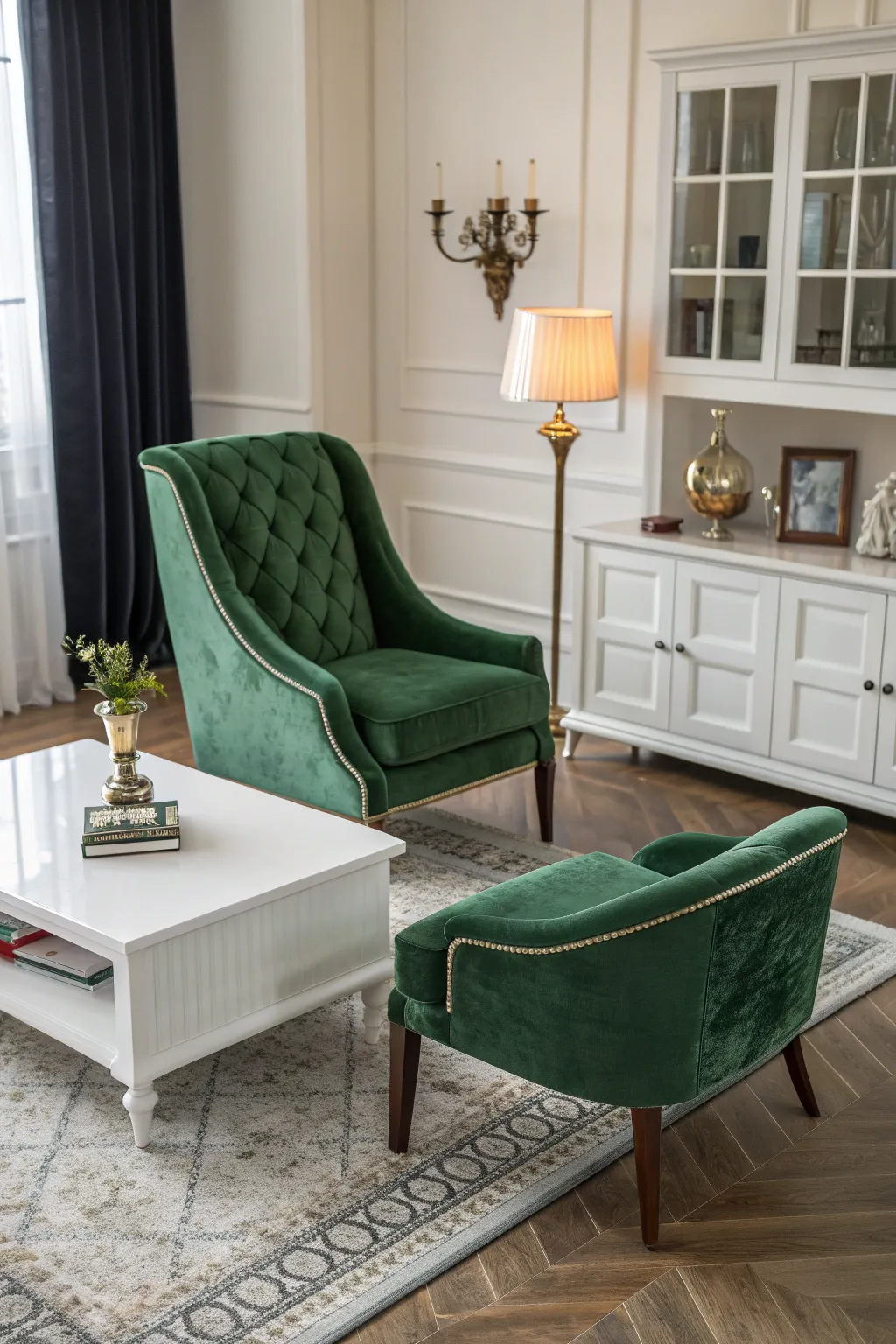 - Emerald Green Armchair: Add a pop of color and comfort with this stylish emerald green armchair.