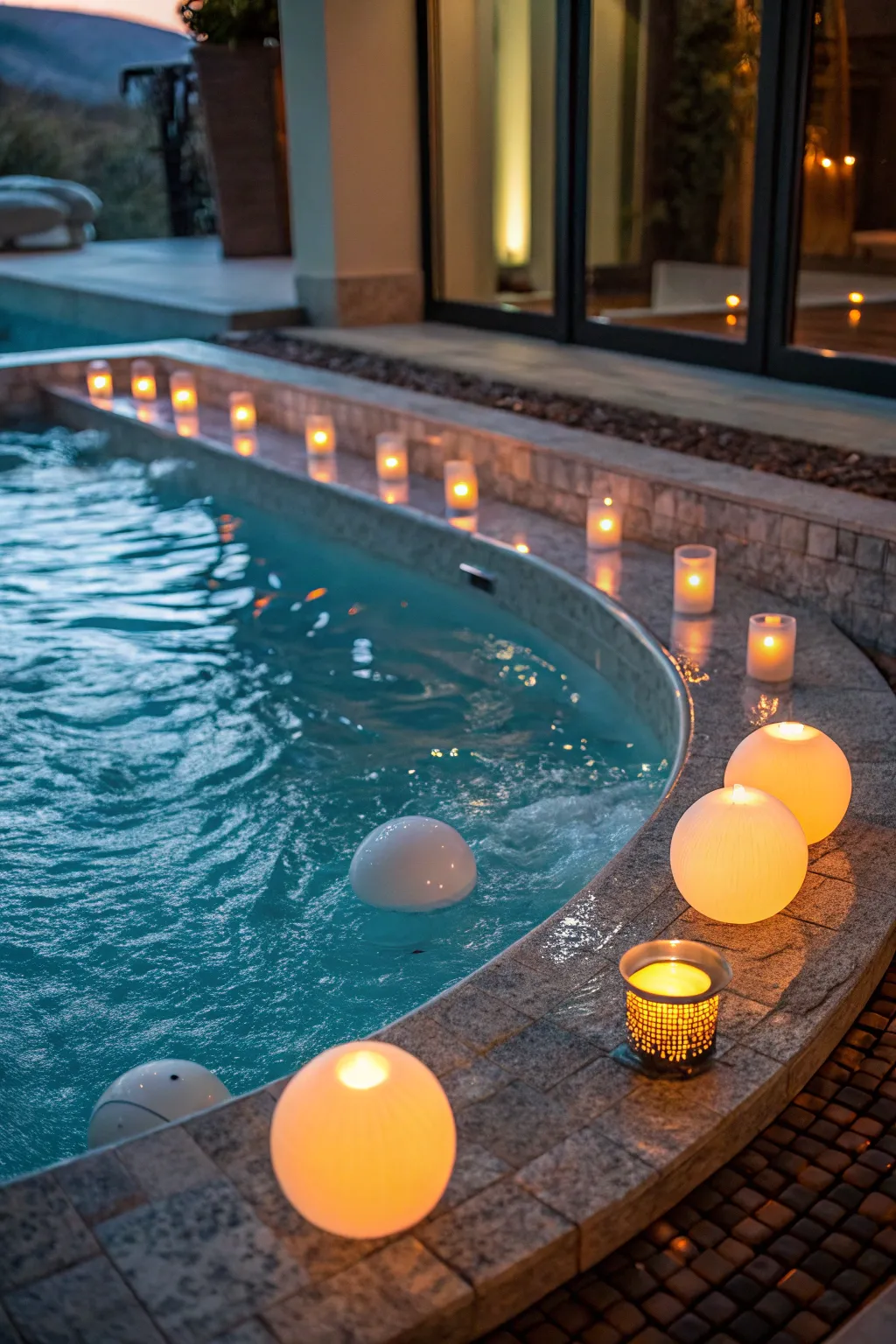 - Waterproof Floating Light Spheres: Bring whimsy to your hot tub with waterproof orbs providing playful and elegant reflections.
