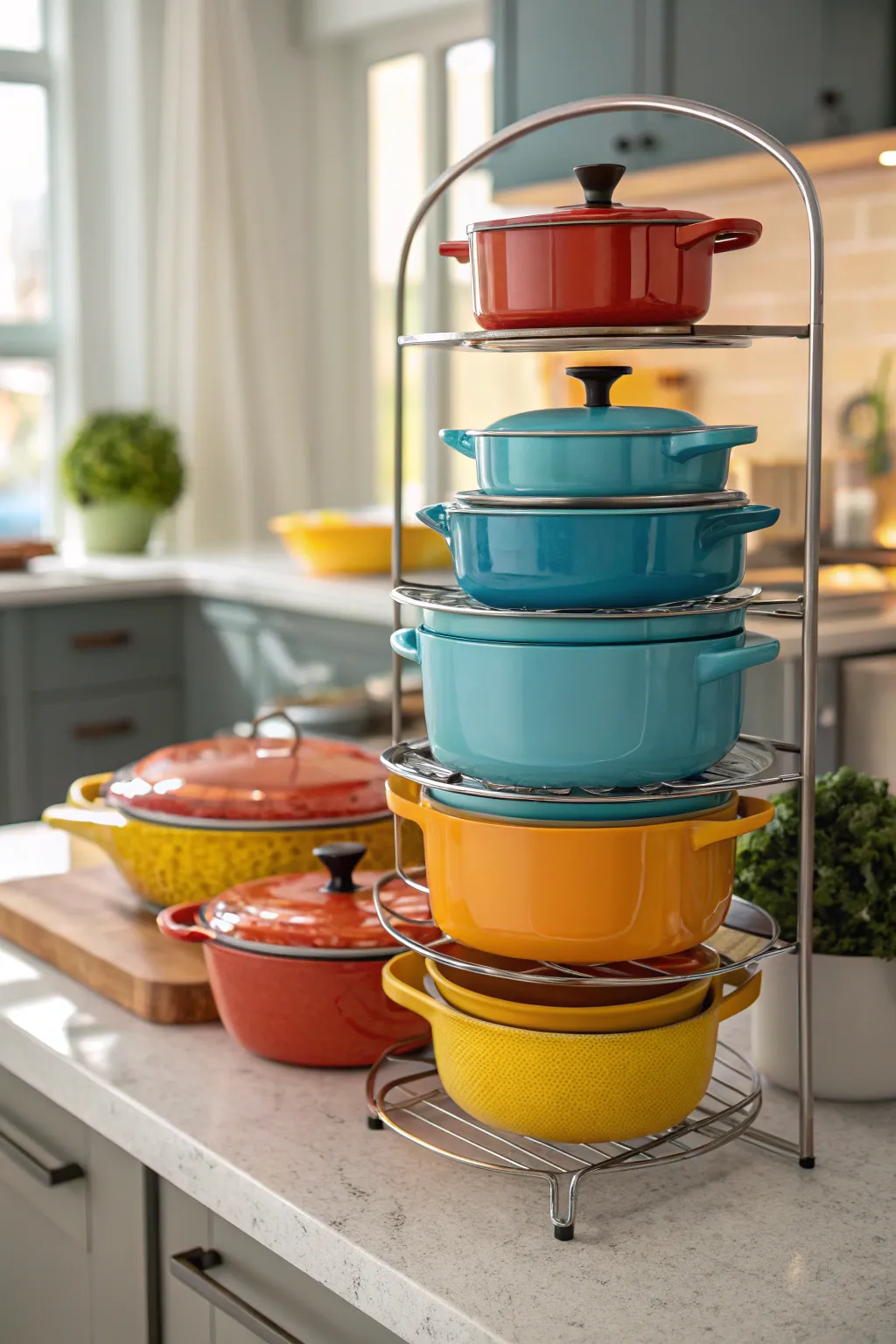 - Tiered Pot and Pan Rack: Utilize vertical space efficiently with tiered racks for neat storage of pots and pans.