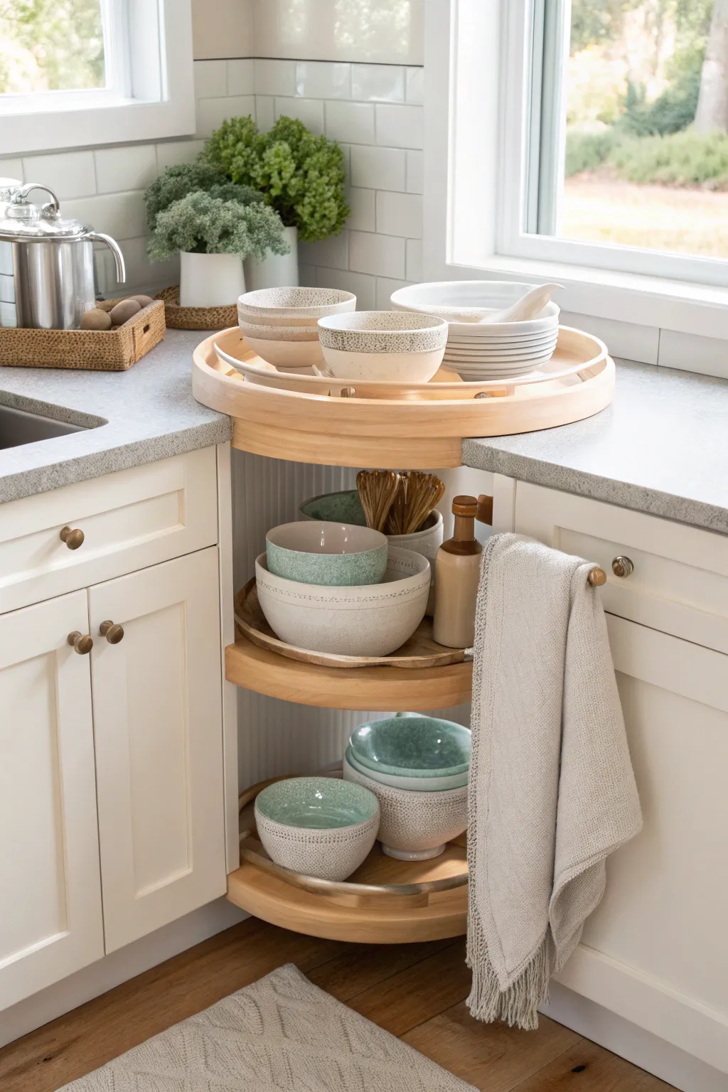 - Lazy Susan Cabinet Organizer: Maximize your corner cabinet space with a rotating Lazy Susan for easy access to items.