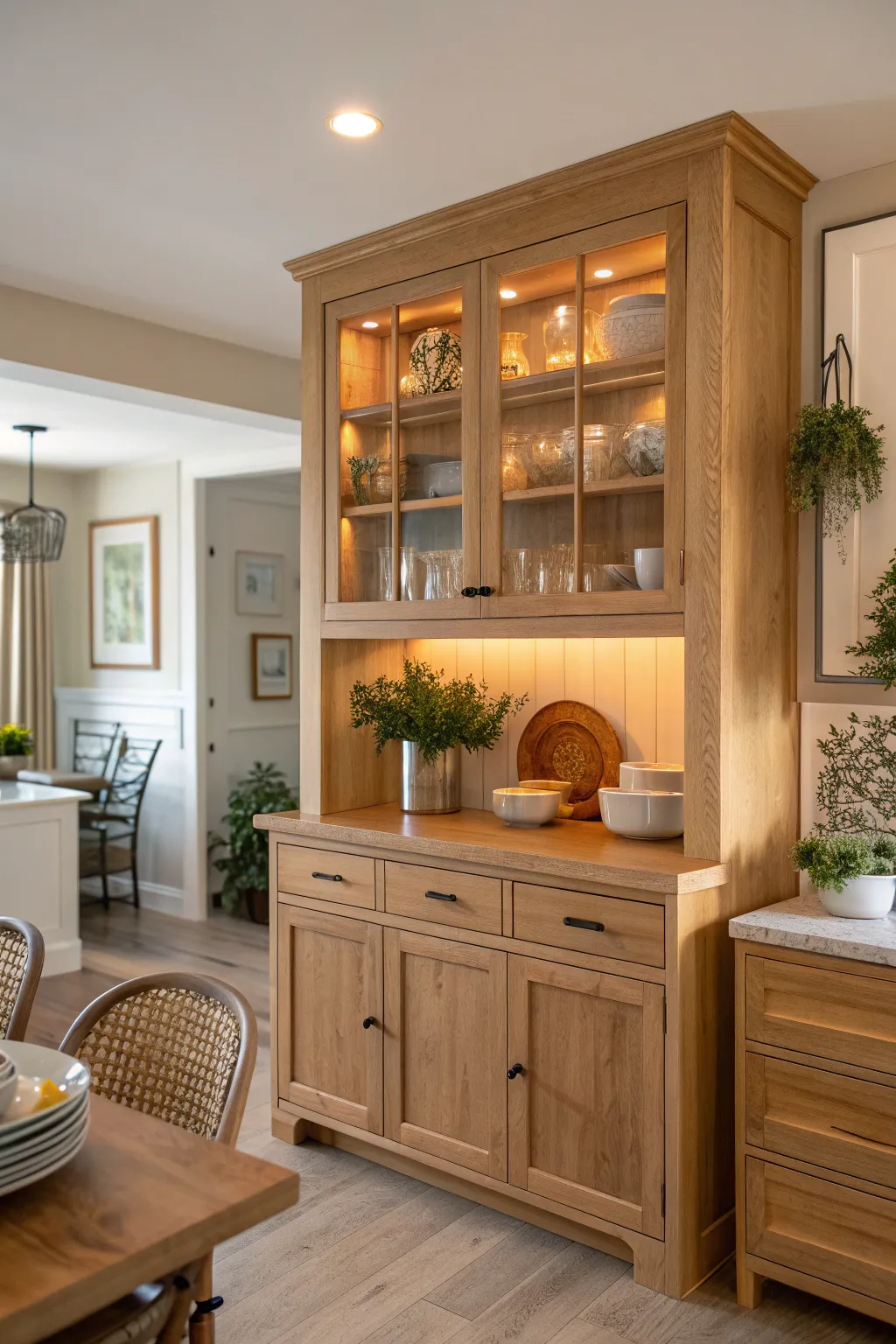 Install subtle lighting to spotlight your hutch’s contents. It’s a game-changer for creating ambiance and highlighting your favorite pieces.