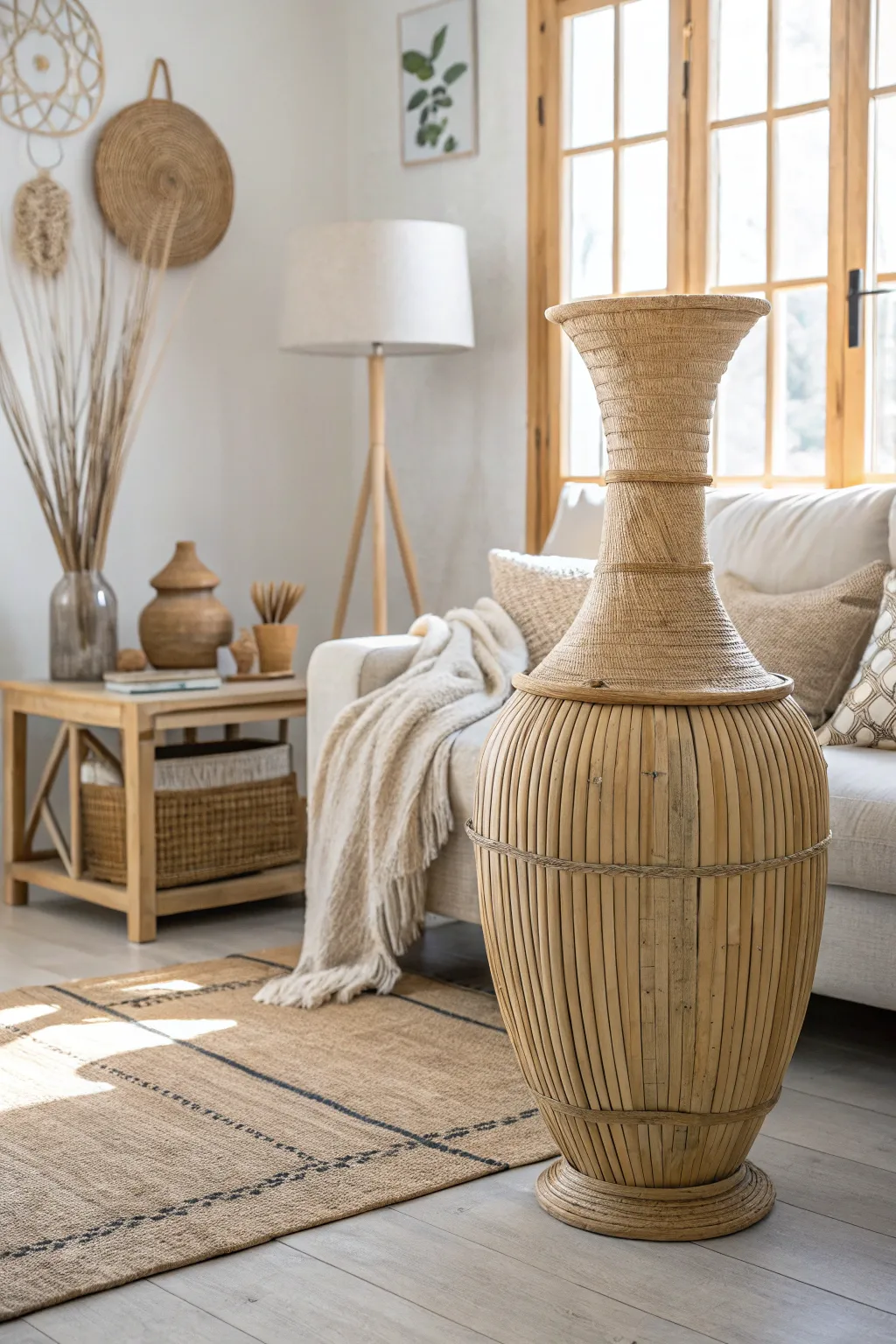 - Woven Natural Fiber Vase: Transform your interior with a woven natural fiber vase, perfect for bohemian and rustic styles.